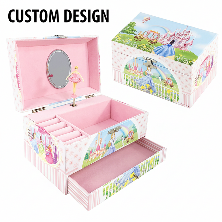 Boîte à musique Yiyu en gros avec château rotatif, thème princesse, boîte à bijoux musicale avec tiroir et miroir, cadeau d'anniversaire pour enfants