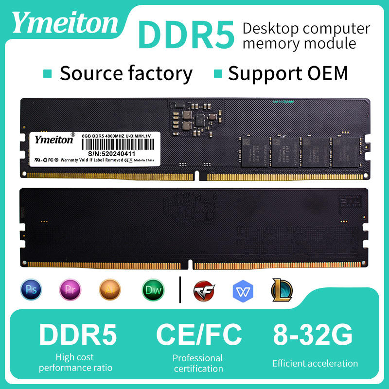 Ymeiton Ordinateur de bureau RAM DDR5 4800/ 5200/ 5600 MHZ Haute vitesse U-DIMM PC5 DDR RAM Ddr5 8G 16G 32G DDR 5 RAM Mémoire pour PC