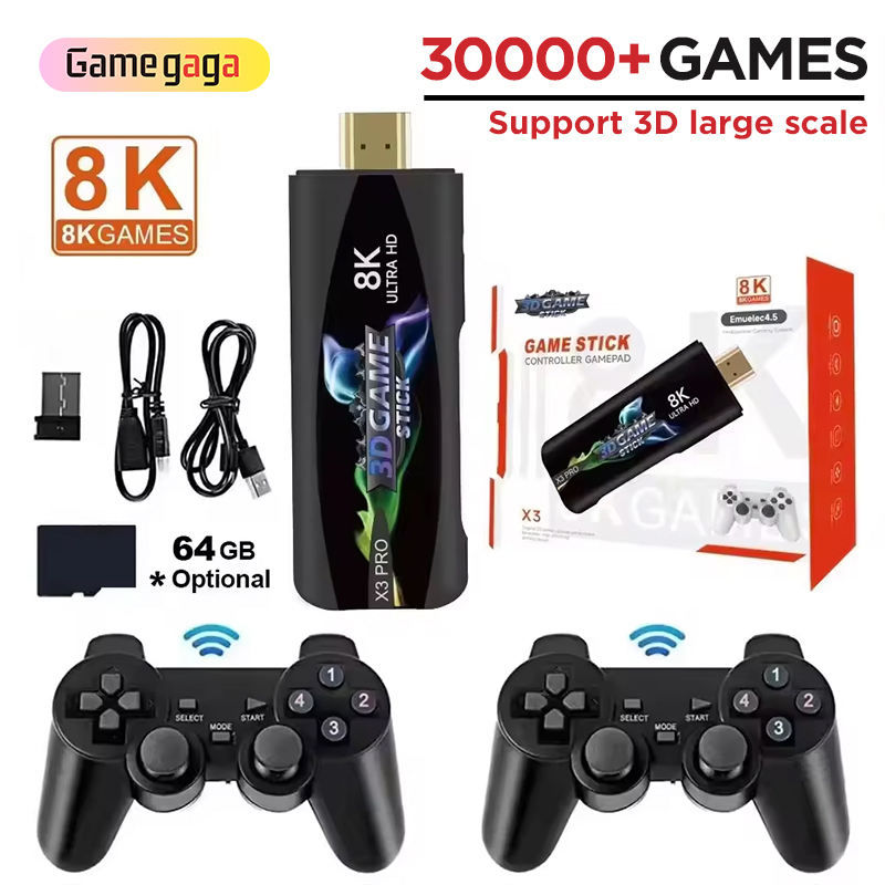 Yo X3 Plus Game Stick 4K 64 Go 30000 jeux classiques HD double TV système Android console de jeu vidéo rétro portable stick de jeu TV