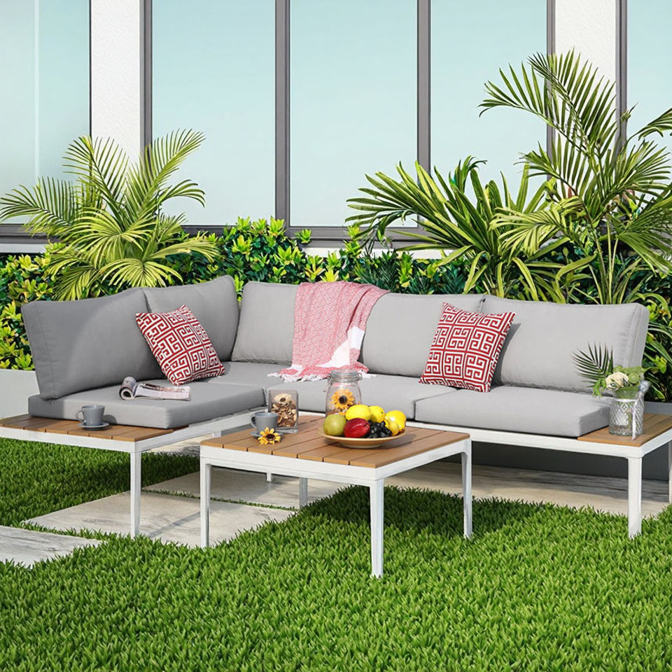 Yoho Moderne 4pcs Jardin Canapé Ensemble Table Basse En Acier Extérieur Canapé Jardin Salon Patio Meubles pour Extérieur Parc Cour Villa
