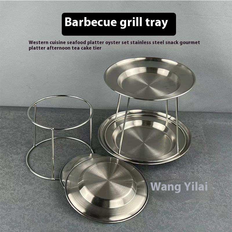Yolecen Ensemble de plaques en acier inoxydable double couche moderne pour fruits de mer pour Sashimi Huître Crabe Tour Buffet Présentoir Chapeau de paille