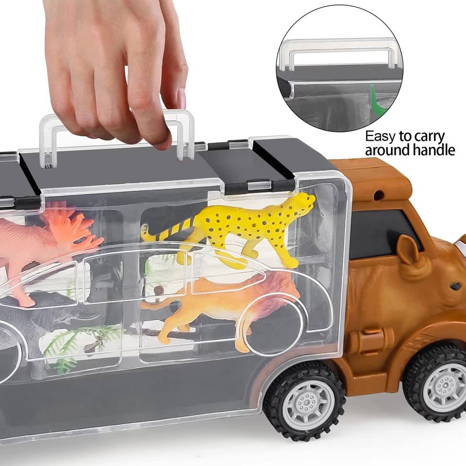 Camion conteneur rhinocéros de stockage Portable Yongnkids avec 4 mini animaux jouets et deux arbres ensemble de jeu en plastique pour les enfants