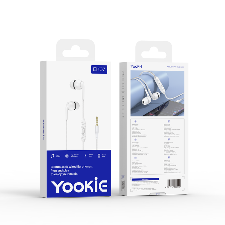YooKiE EK07 Wired In-Ear Earphone with Microphone HIFI 10mm Driver 3.5mm White