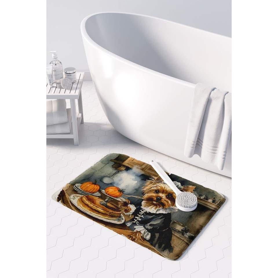 Yorkie automne cuisine citrouilles tapis Anti-Fatigue mousse à mémoire tapis de bain lavable en Machine confort coussin tapis de cuisine
