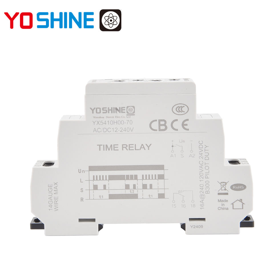Relais à déclenchement unique à bords montants Yoshine Miniature pour usage automobile AC/DC24-240V 10A/16A SPDT, avec bornes à vis scellées et temporisation à l'activation