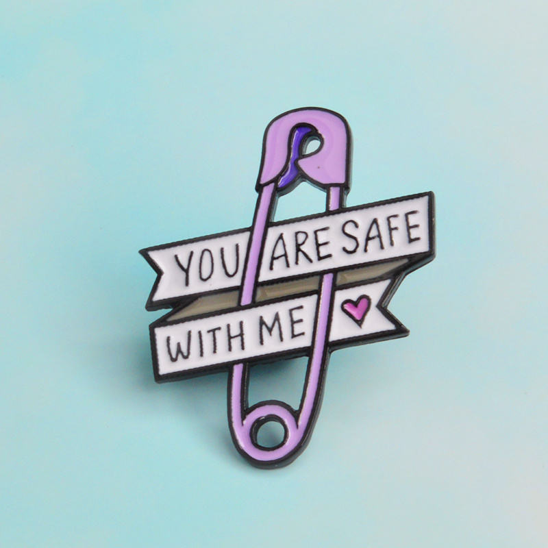Vous êtes en sécurité avec moi violet Safty épinglette coeur broches dur personnalisé émail broches Badges broches cadeaux pour hommes femmes en gros