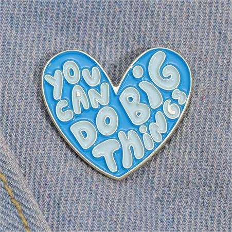 Vous pouvez faire de grandes choses lettre bleu amour coeur Phrase broche broche Simple vêtements sac décoration émail métal épinglette Badge