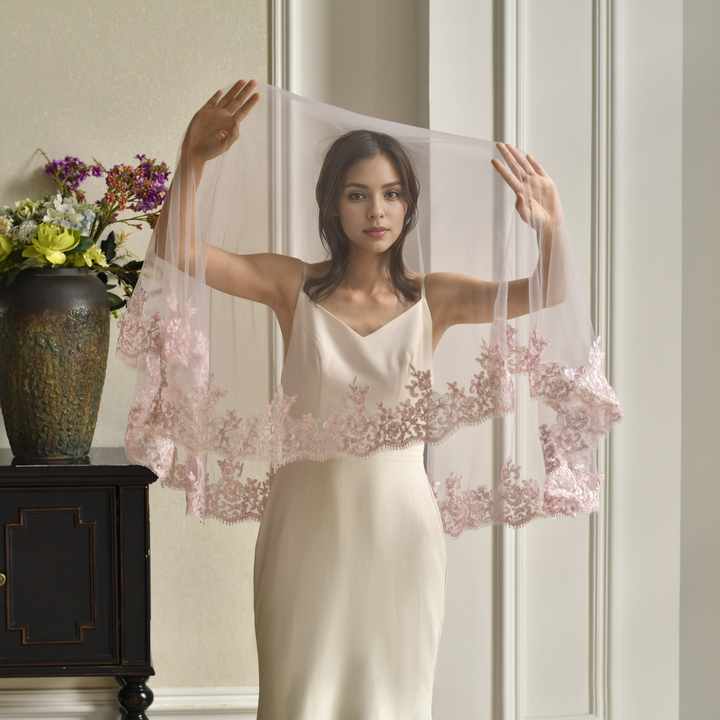 YouLaPan Voile de mariée luxueux en maille transparente monocouche avec bordure en dentelle de haute qualité, peigne à cheveux non inclus M115