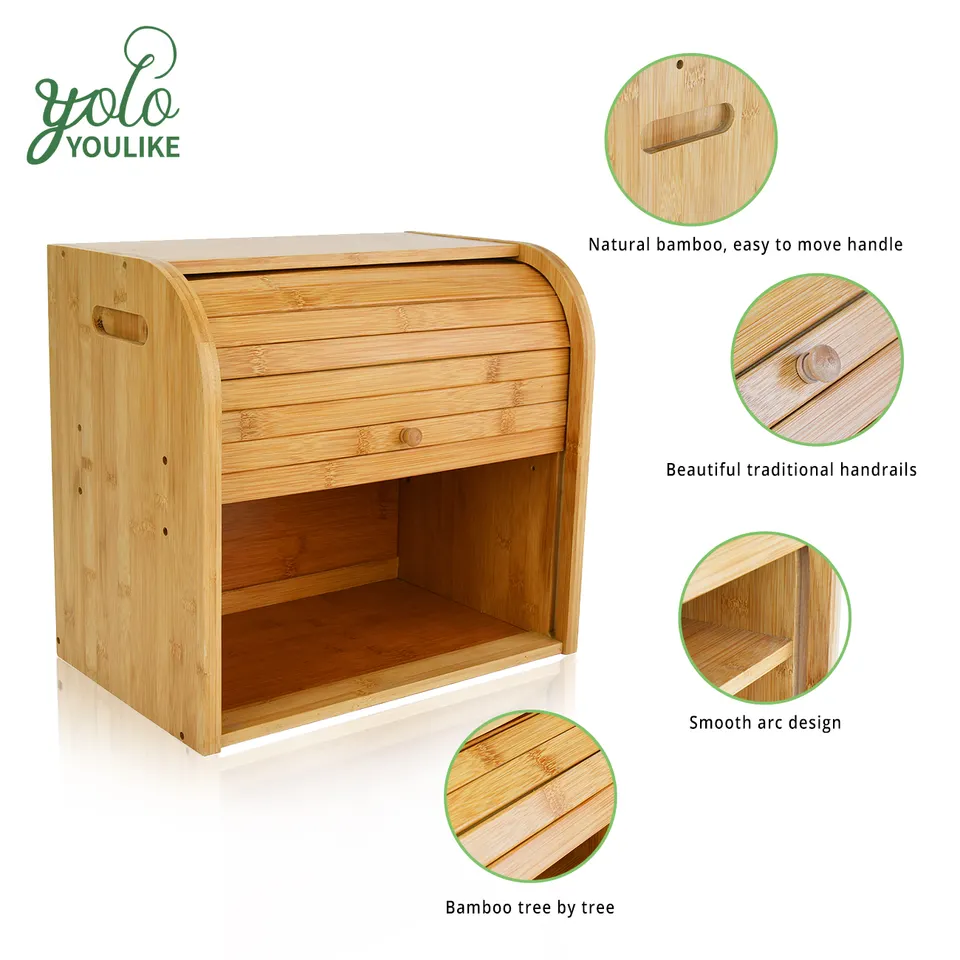 Youlike 2 couches de haute qualité en gros Extra Large boîte à pain en bambou naturel garde-pain avec couche amovible pour la cuisine