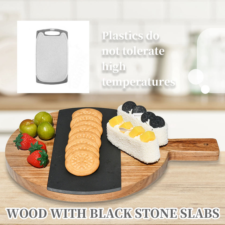 Nom du produit:Planche à découper ronde en acacia avec ardoise noire