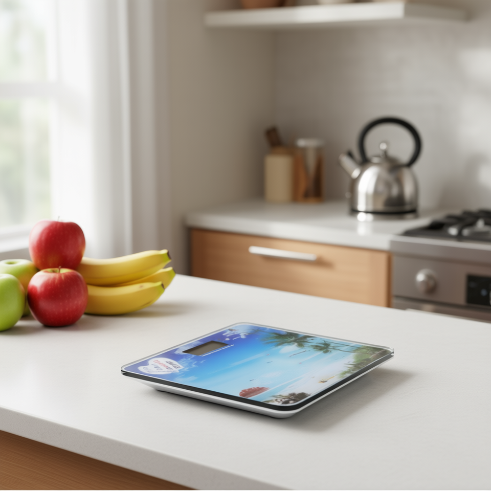 Balance de cuisine numérique portable Young Electronicos ES022 en verre trempé rectangulaire, alimentée par piles