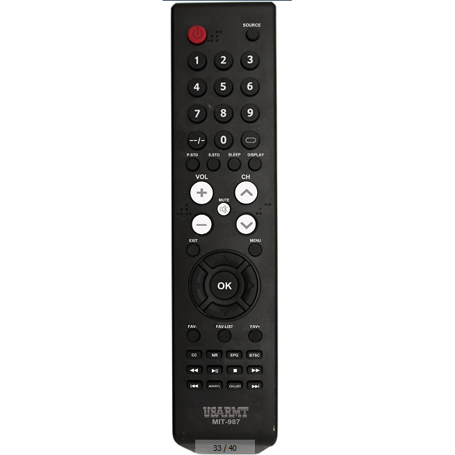 Télécommande TV électronique universelle programmable sans fil Young Electronicos Mit 987, portée 10m, corps en plastique avec code d'apprentissage