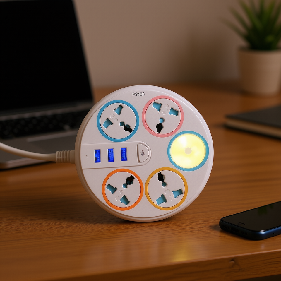 Multiprise universelle Young Electronicos 4 prises, câble de 2 m, ports USB, prise EU PS109, 16A 220V, rallonge en plastique