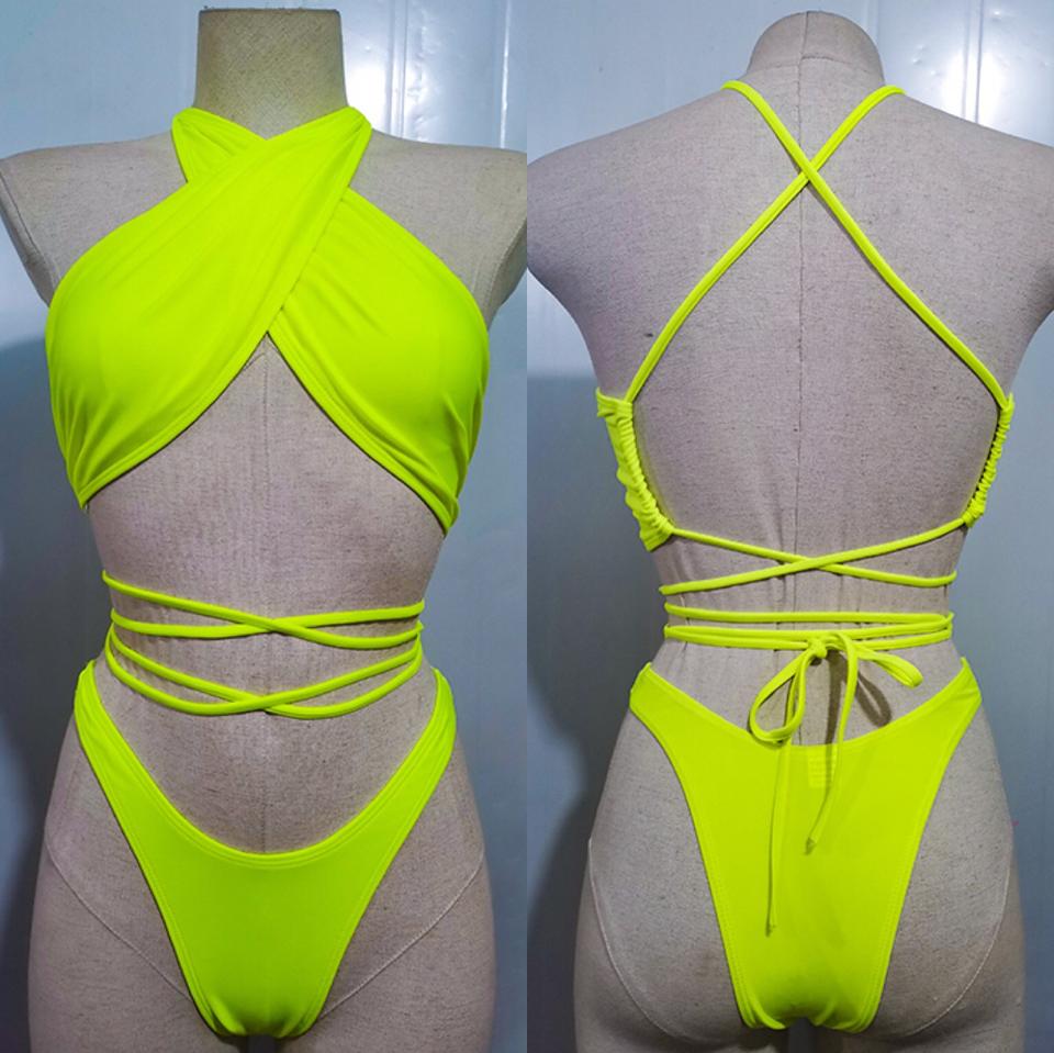 Young Little Models Swimsuit Factory Cheap Price Extreme Sexy Bandeau Bikini with High Cut Bottom 2-Piece Set Front Logo Print