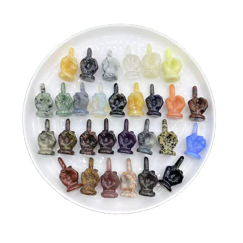 Youning 5cm Statue d'animal en pierre précieuse naturelle sculptée à la main (Obsidienne, Quartz Rose, Labradorite, Pyrite) en forme de doigt d'honneur