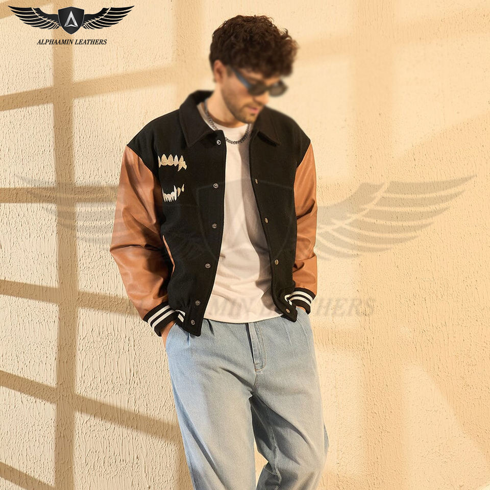 Blouson Varsity à manches en cuir