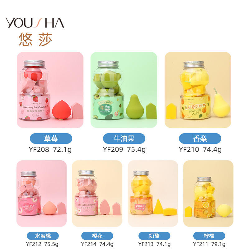 Ensemble de houppettes Yousha 12 pièces, éponge de maquillage en polyuréthane hydrophile pour usage sec et humide, formes avocat, fromage, fraise
