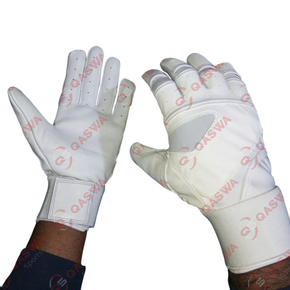 Gants de frappe de baseball en cuir à manchette longue de couleur blanche adulte pour jeunes joueurs de baseball professionnels