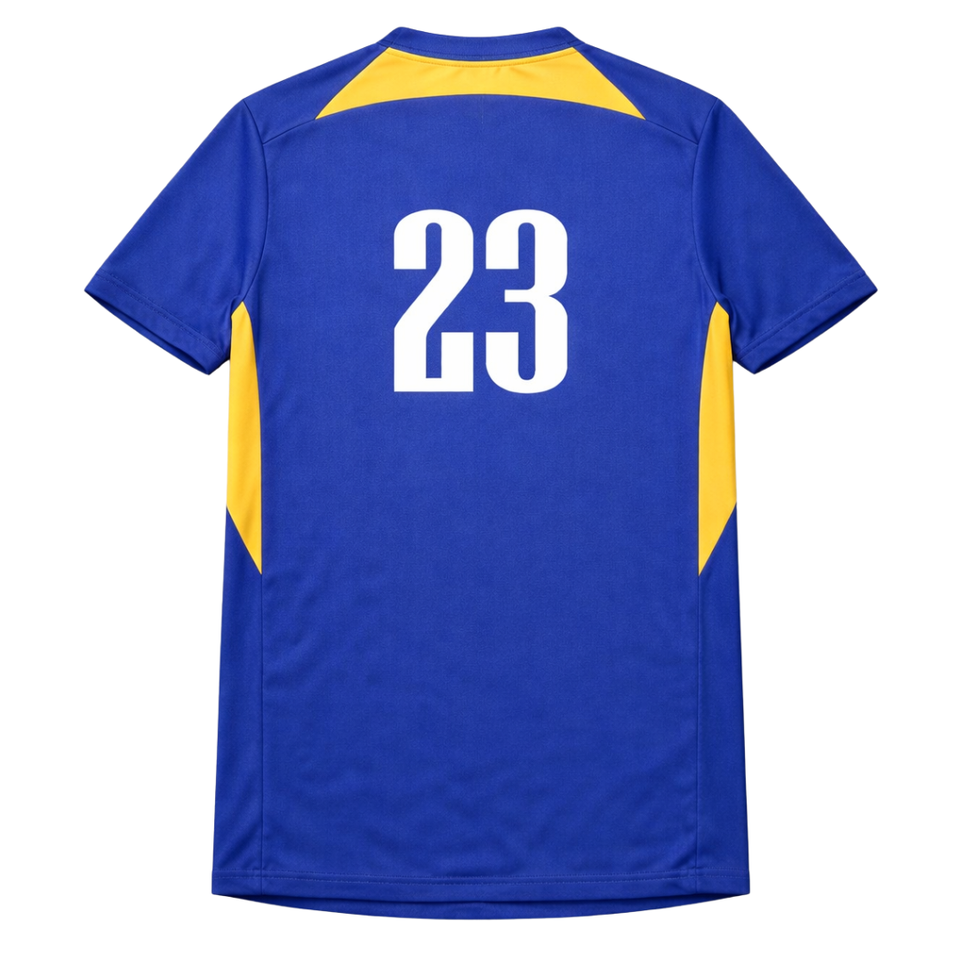 Maillot de football personnalisé Youth Hawk Evolution, maillot d'équipe personnalisé de haute qualité avec le numéro 23 en bleu et jaune