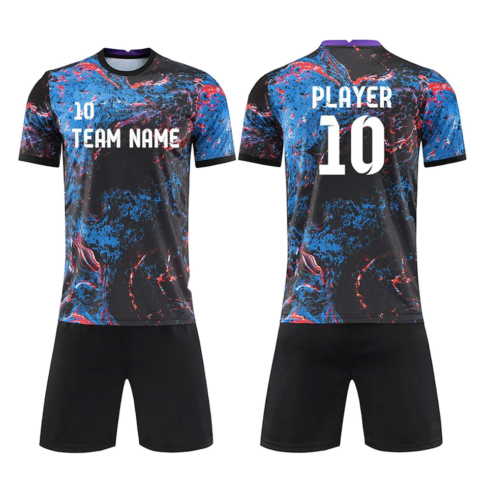 Youth Soccer Uniform Football Jersey Full Set Sublimation Custom Blue Yellow Mens Football Shirts Short Sleeve Soccer Wear