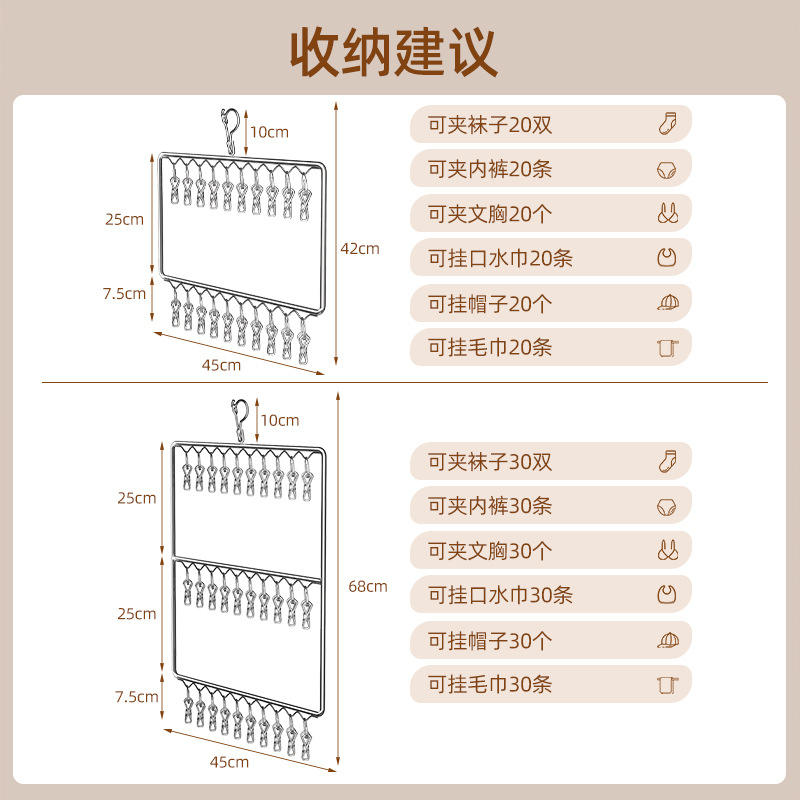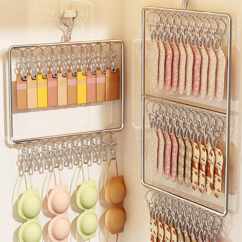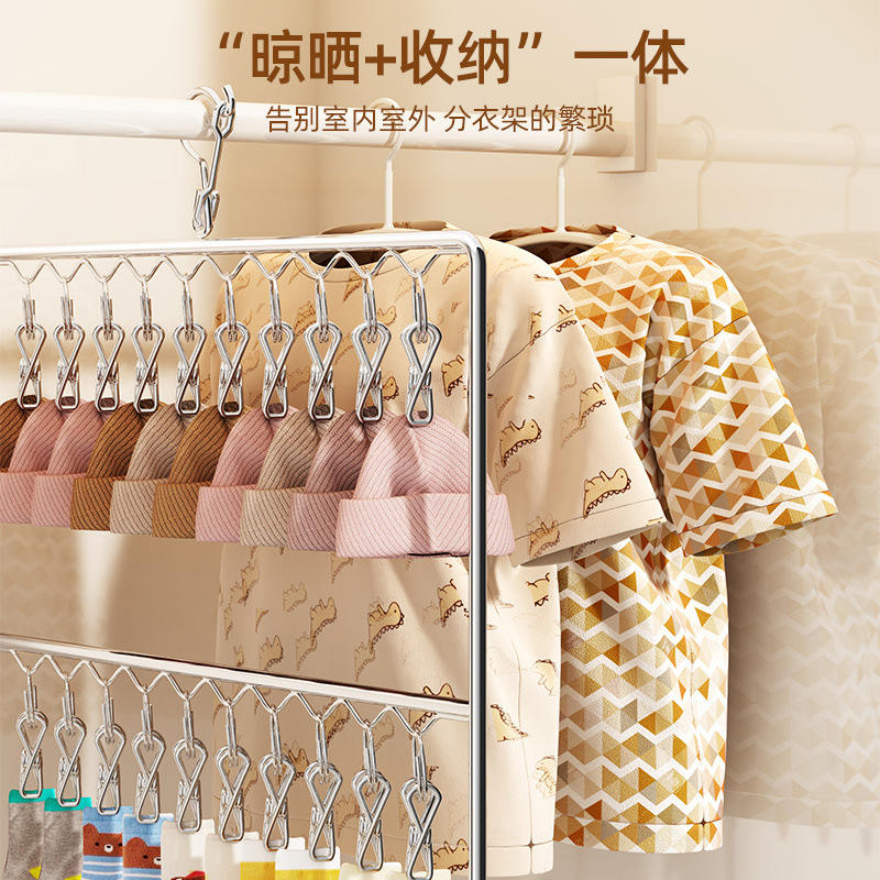 Séchoir à chaussettes en acier inoxydable Yq avec pinces, type crochet, pour la maison, le balcon, l'extérieur, organisateur de vêtements, séchoir à linge