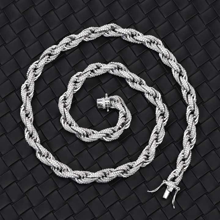 Nom:Chaîne à maillons cubains en diamant moissanite en argent massif 925, 8mm