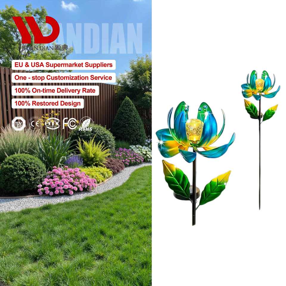 Lampes solaires de jardin personnalisées Yuandian Factory, approuvées RoHS CE FCC, pour l'approvisionnement en gros des chaînes de magasins, éclairage nocturne de patio
