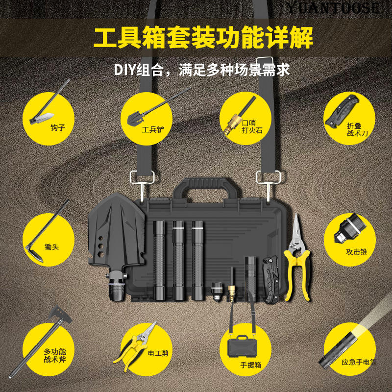Ensemble de pelle pliante multifonction Yuantoose avec hache et outils pour le camping, la survie et les activités de plein air
