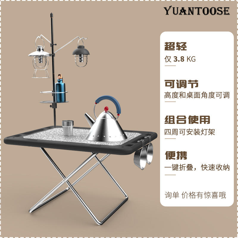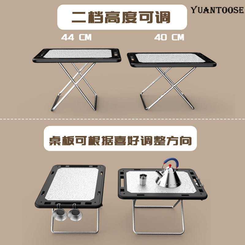 Table pliante d'extérieur Yuantoose 70x50x44cm, plateau rectangulaire en acier inoxydable, table de camping portable