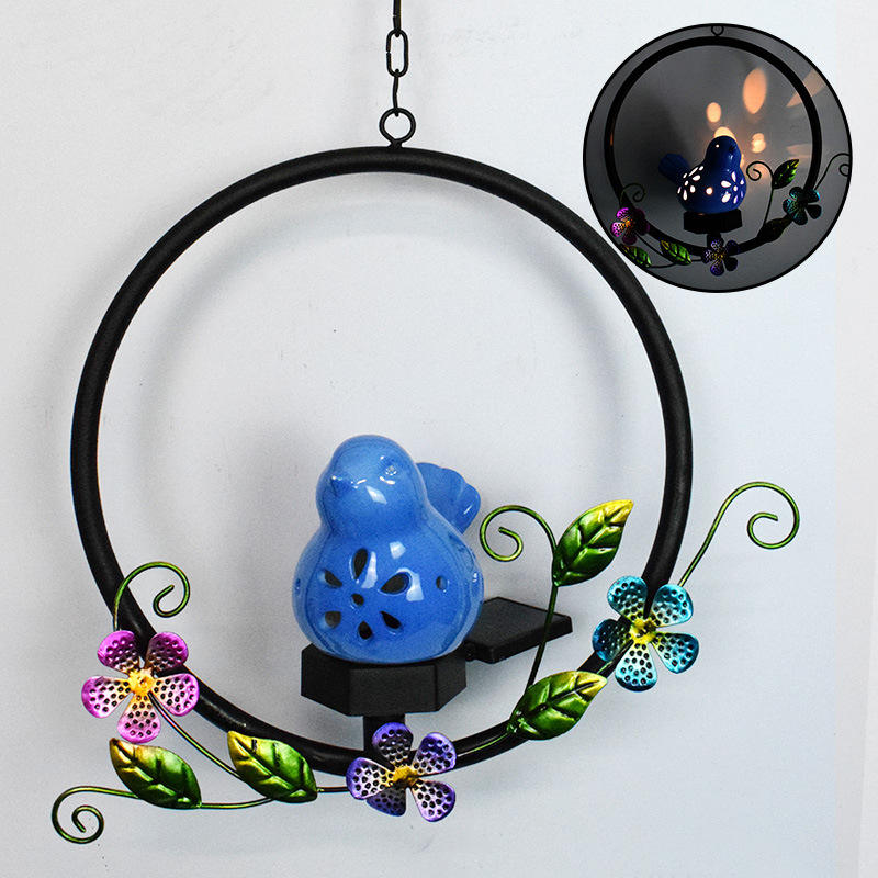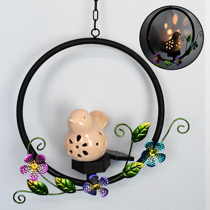 Lampe solaire d'extérieur en céramique et fer forgé Yuantou Factory, 5W, corps en PC, LED blanc chaud, artisanat pour pelouse, commerce électronique transfrontalier