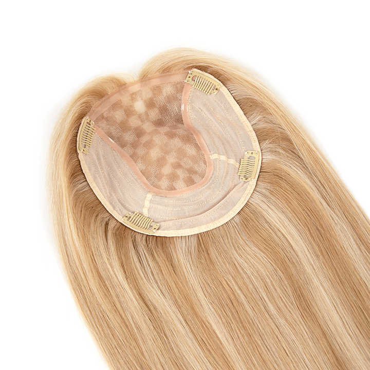 Topper de cheveux humains vierges européens Yuanzhen Factory 6*7 Mono Net, couleur piano, base en soie, lisse, prêt à être expédié