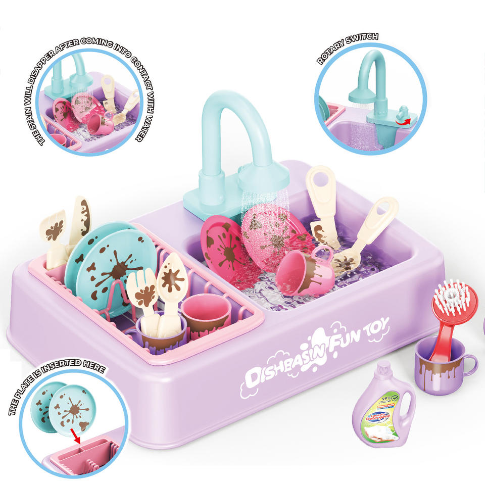 Ensemble de jeu de cuisine Yuglow, jeu de pique-nique en plastique, jouet à thé et pâtisserie avec tasse à changement de couleur sensible à la température et table de nettoyage