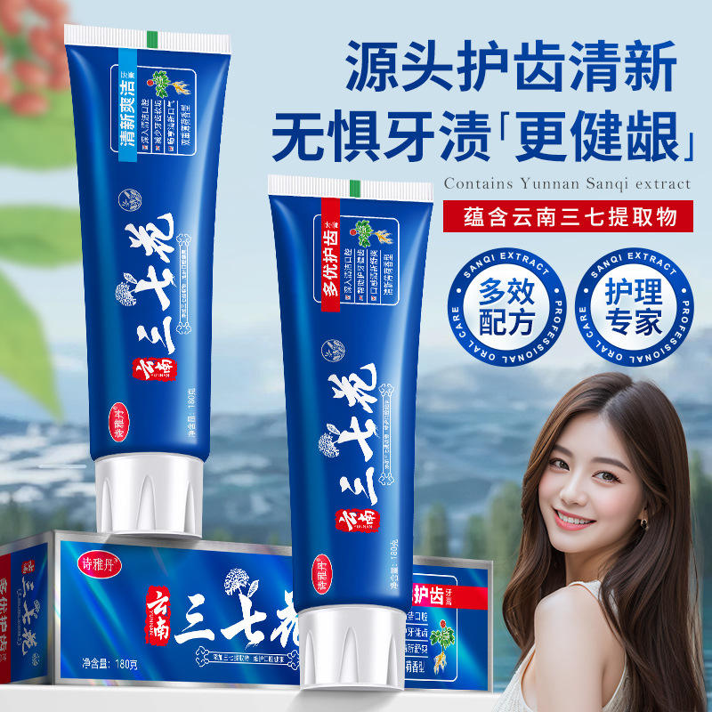 Dentifrice aux fleurs de Panax Notoginseng du Yunnan 180g Nettoyage en profondeur Haleine fraîche Protection des gencives