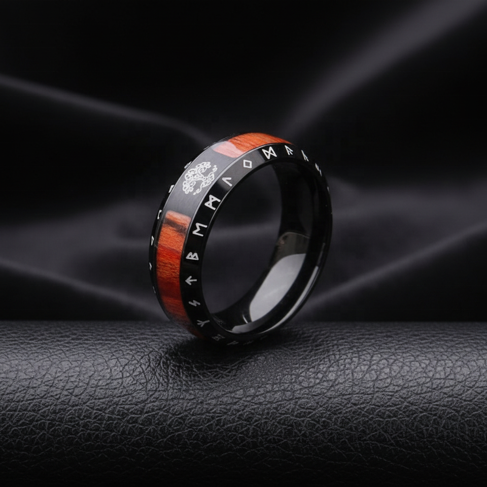 Bague Viking en Acier Inoxydable 316 Yunnique pour Homme, Incrustation Bois Argent Vieilli, Yggdrasil Audacieux, Style Biker Punk, Cadeau