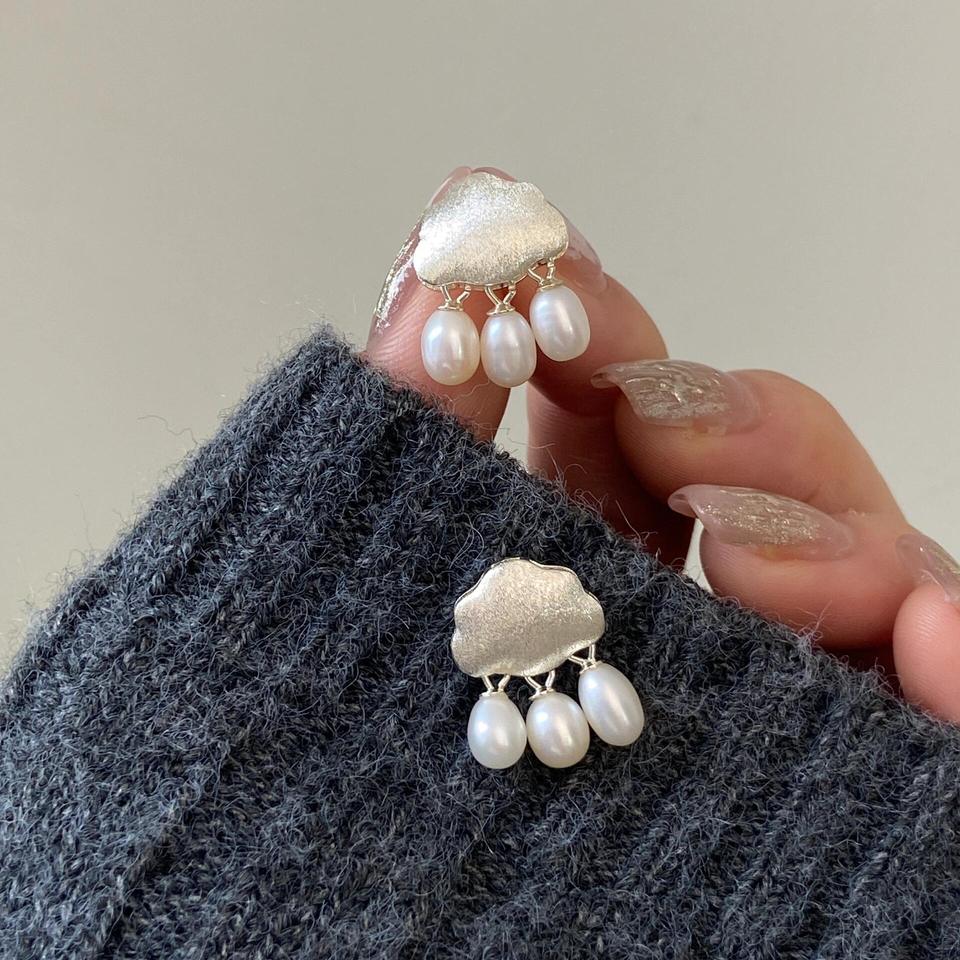 Boucles d'oreilles pendantes en argent pur S925 Yunyan Chengyu pour femmes, perle d'eau douce naturelle, petites gouttes de pluie en forme de nuage, artisanat brossé
