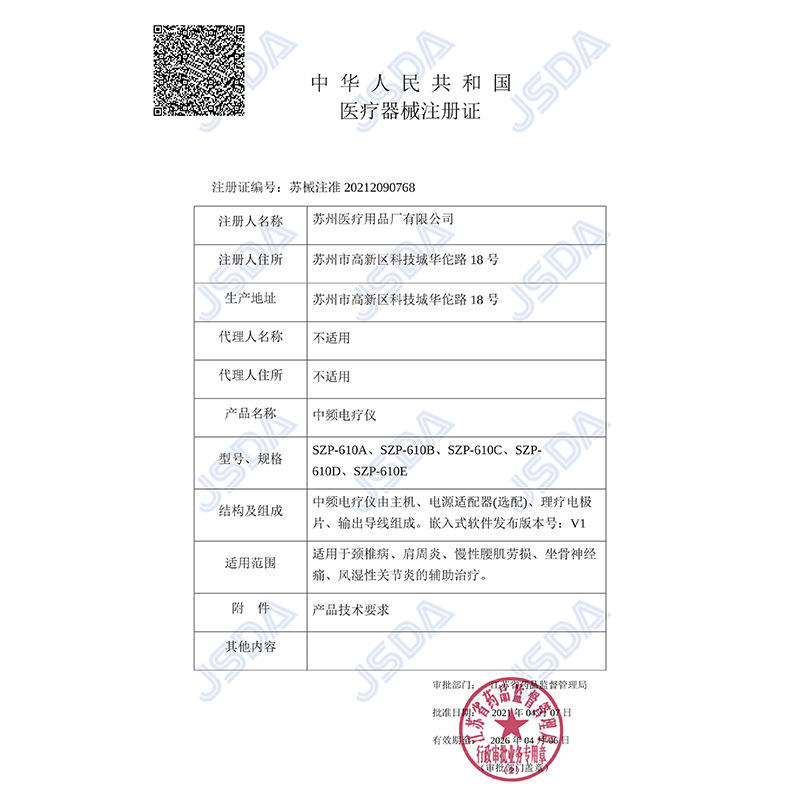 Appareil d'électrothérapie à moyenne fréquence Yuwell Szp-610b avec fonction chauffante pour soulager le cou, les épaules et les lombaires