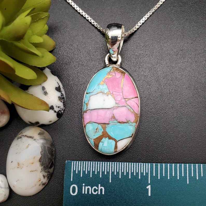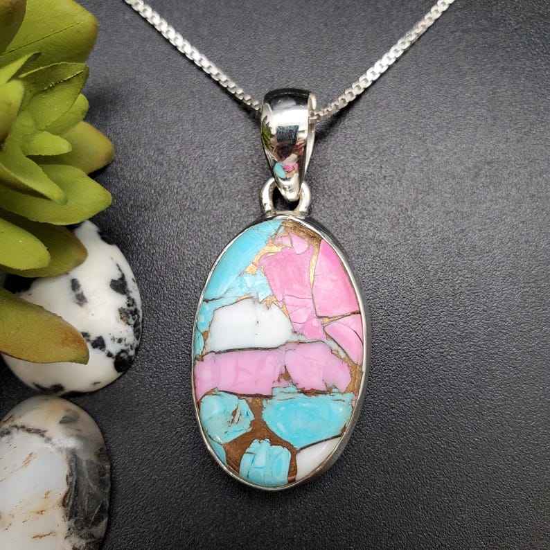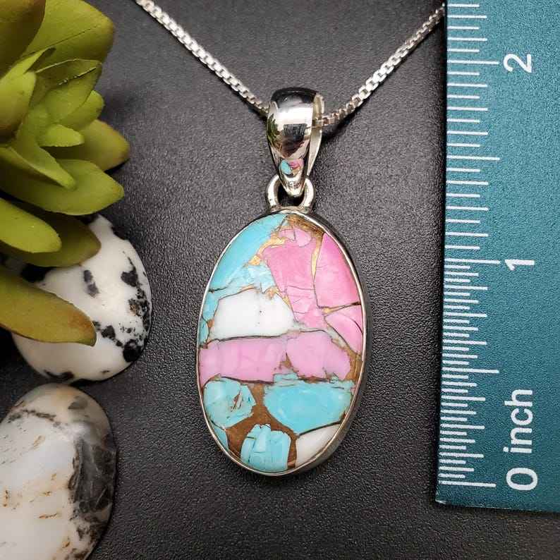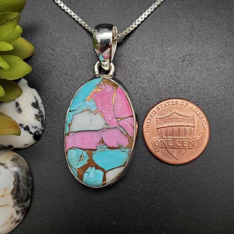 Z-053 | Unique Sterling Silver Pink Cotton Candy Turquoise Pendant Necklace | Pink Cotton Candy Pendant | Mohave Copper