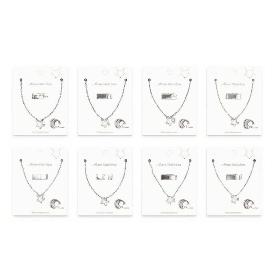 Collier en acier inoxydable avec pendentif étoile Z. Blade Chain, ensemble de bijoux tendance, cadeau unisexe, style tendance, 12 pièces