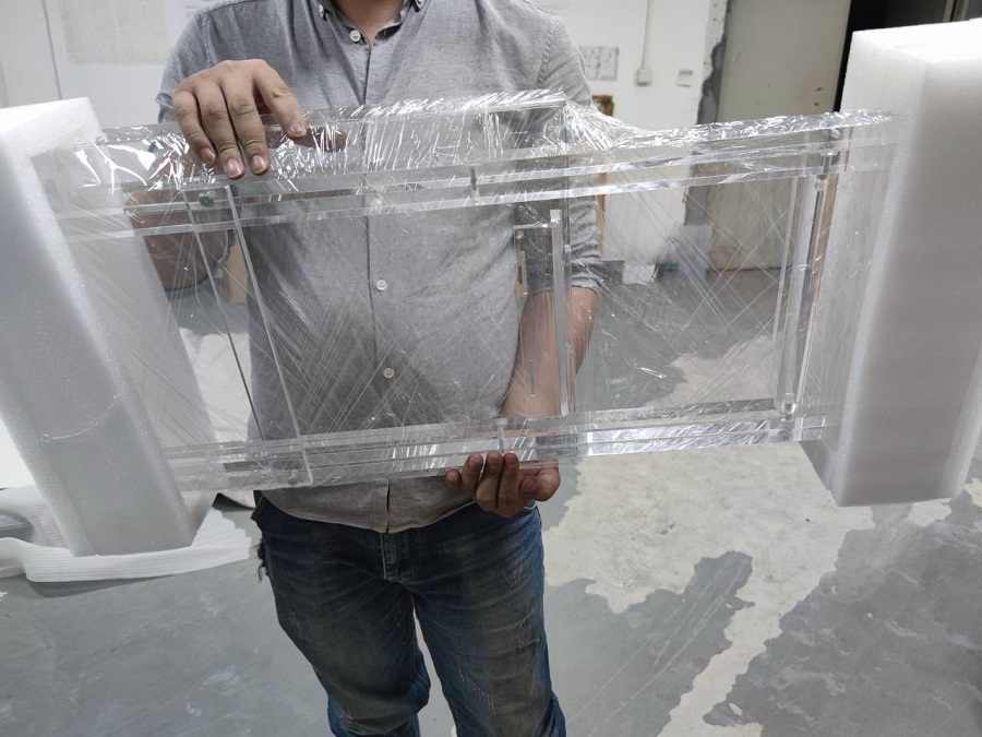 Transparent acrylique tabouret de bar + pe film + en plastique mousse + carton