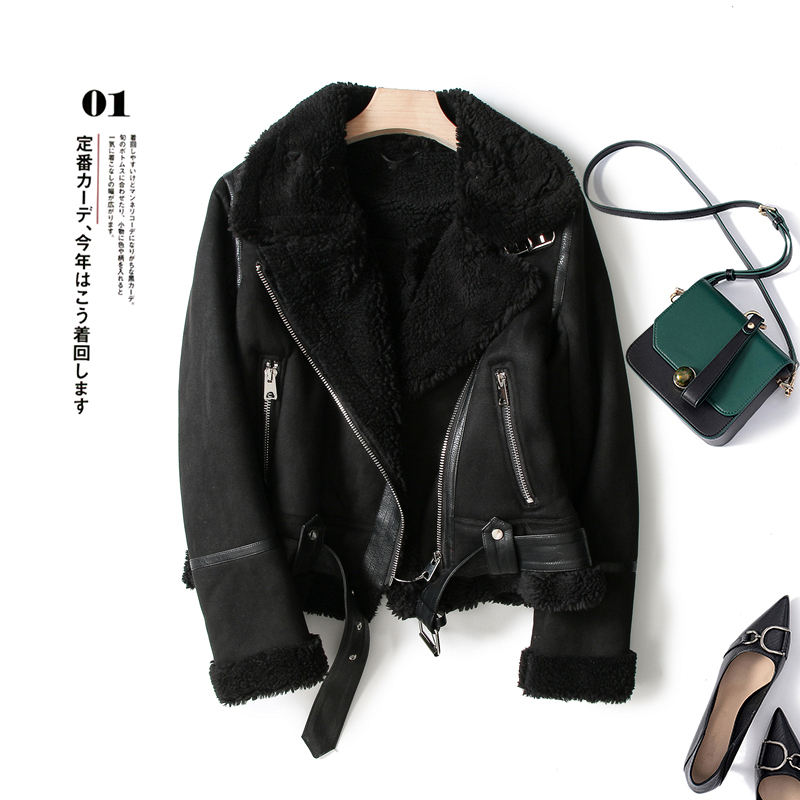 ZACK RAIN 2023 Women's Vintage Fur Integrated Brown Jacket Chic Lapel Long Sleeves Outwears Chic Bla