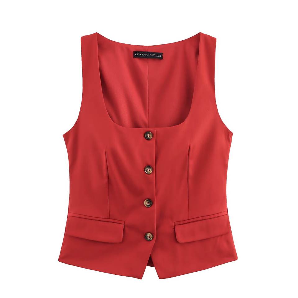ZADE2025 femmes boutonné col carré sans manches tempérament haut printemps nouveauté gilets et gilets