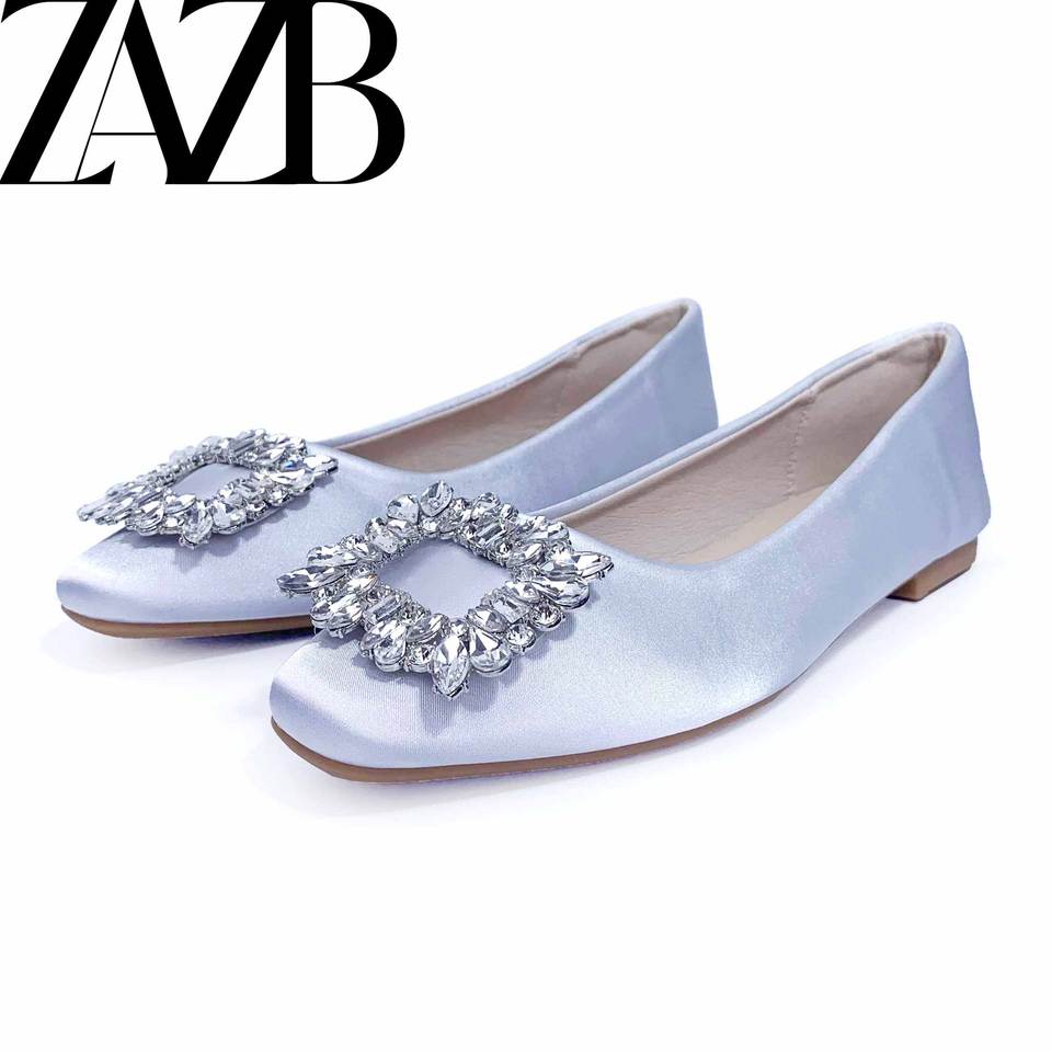 ZAZB Brand Custom Women Shoes Luxury Rhinestone Flat Shoes Ladies Boat and Sandals Loafers for Women's Bridal Ballerina