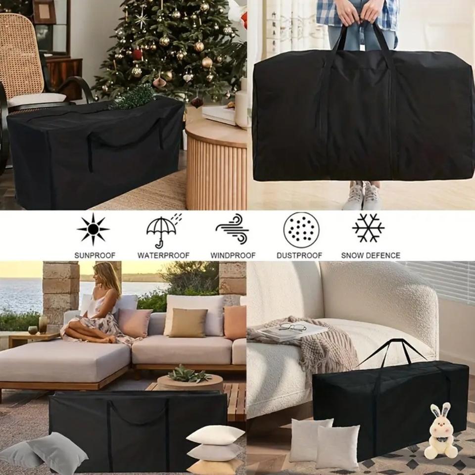 Sac de rangement pour sapin de Noël ZB105, tissu Oxford 600D, noir, rectangulaire, anti-poussière, utilisation en extérieur