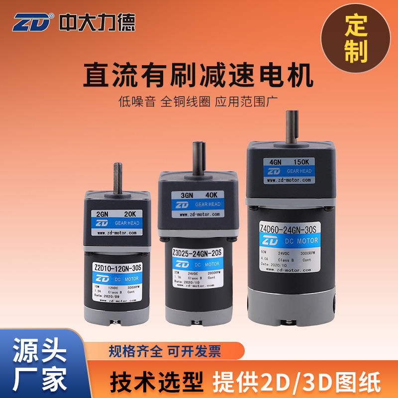 ZD DC Motor 24V 25W 3000RPM Gear Head 7.5K Ratio Z3D25-24GN-30S