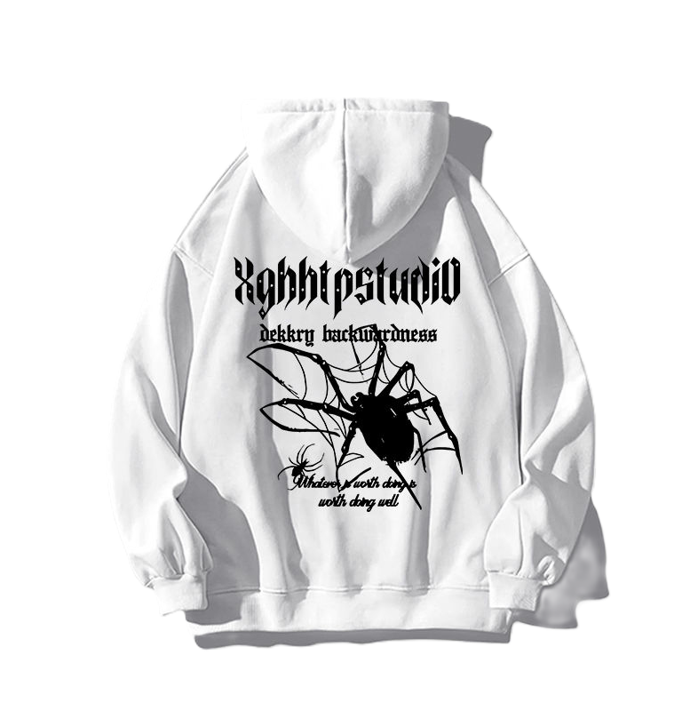 Sweat-shirt à capuche blanc surdimensionné avec imprimé araignée gothique esthétique sombre personnalisable ZEDE Factory