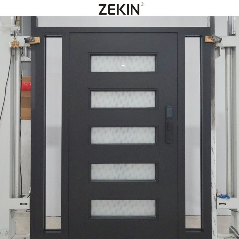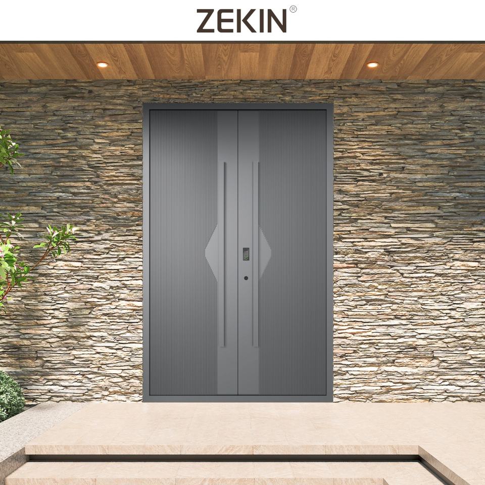 Portes pivotantes extérieures modernes en acier inoxydable ZEKIN DOOR, sécurité anti-effraction pour entrée, cadres en acier pivotants extérieurs