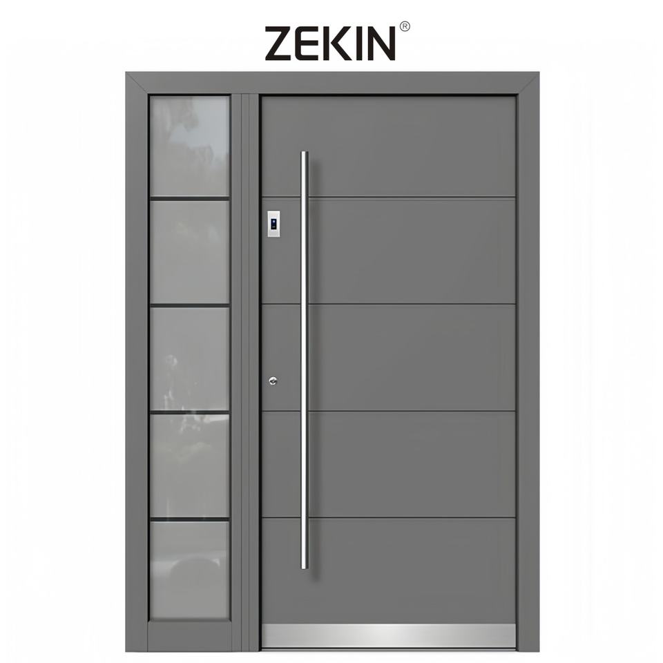 Porte d'entrée pivotante en acier moderne ZEKIN DOOR pour villa résidentielle, avec caractéristiques de sécurité anti-effraction et style de design français