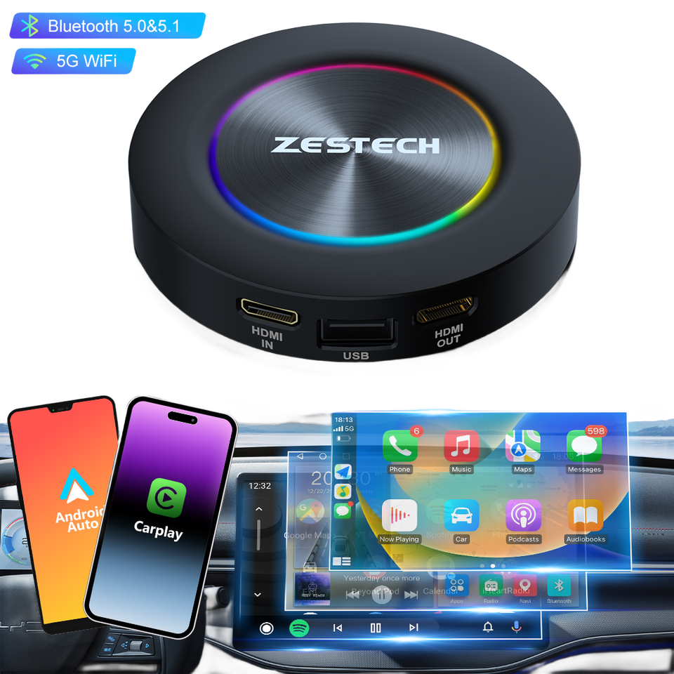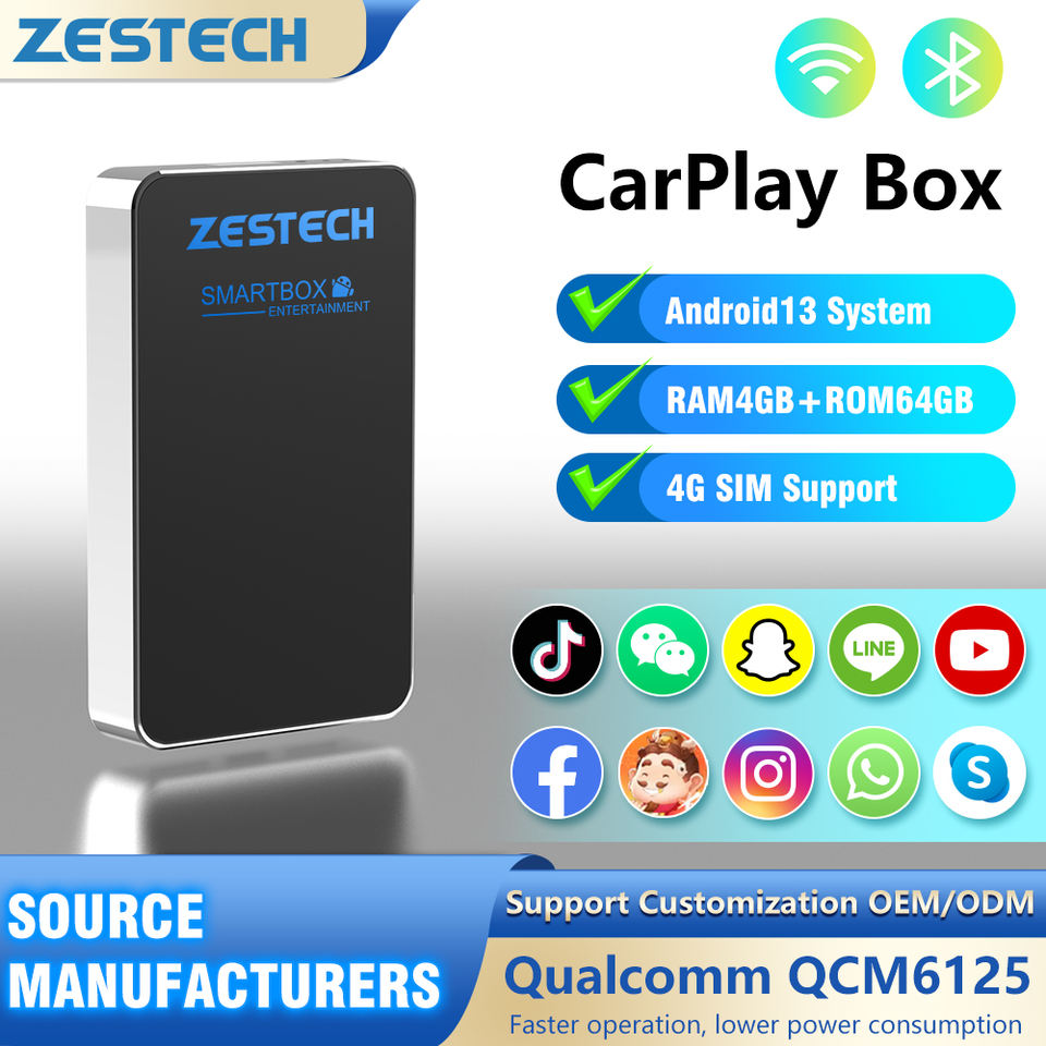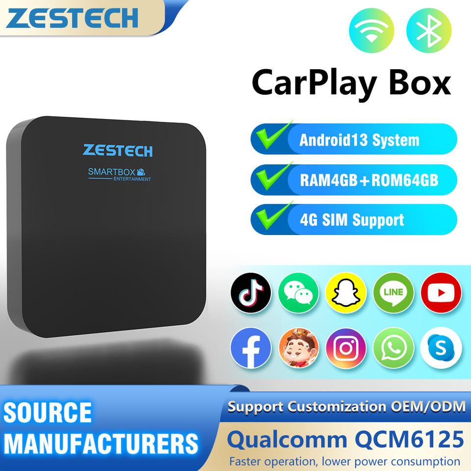 ZESTECH Smart Ai Box Miroir Lien Sans Fil Carplay Qualcomm système Vidéo Box Carplay pour Universel Android 14 Carplay box