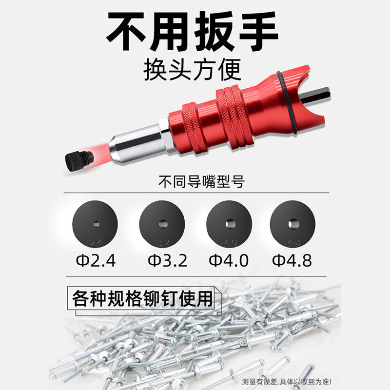 ZHCY Electric Drill Rivet Gun Adapter Red Aluminum Alloy High-speed Steel HSS For Home Use