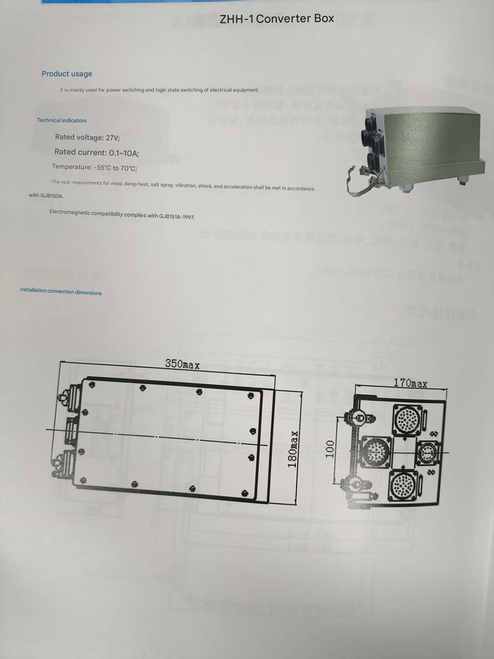 Boîtier de conversion ZHH-1 avec conducteur en cuivre, isolation FEP et gaine ETFE, température de fonctionnement de -55 à 70°C